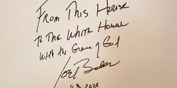 El demócrata ya había escrito un mensaje similar en las paredes de su casa previo a las elecciones de 2008 cuando era candidato a la vicepresidencia como compañero de fórmula de Barack Obama, quien se terminó imponiendo frente a John McCain.