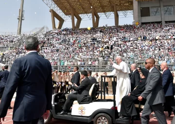 Con un imponente operativo de seguridad por toda la ciudad, que incluye patrullaje marítimo por el Nilo y miles de agentes de civil y de uniforme por las esquinas de El Cairo, Francisco había llegado minutos después de las 9 locales (4 de Argentina) al estadio ‘30 de junio’, en honor a un ataque aéreo contra Israel en ese día de 1970.