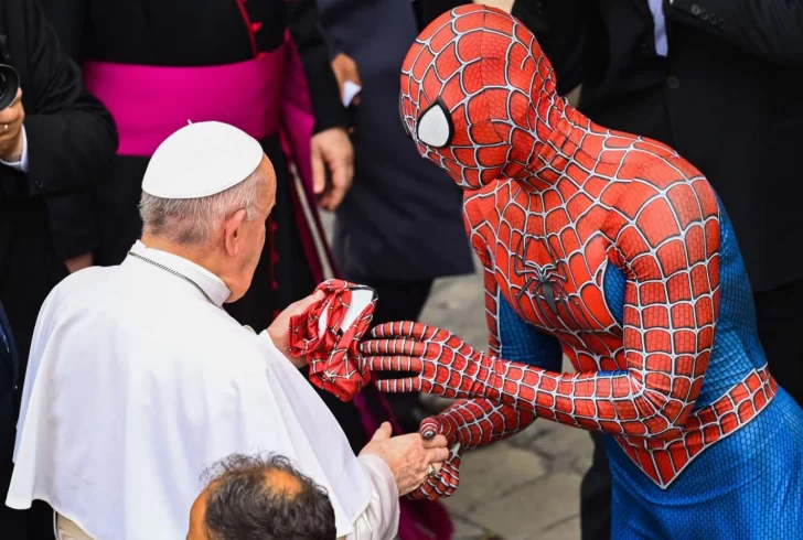 Este miércoles dos “potencias” se saludaron en el Vaticano. De un lado, el papa Francisco, líder de la iglesia católica. Del otro, Spider-man, uno de los superhéroes más conocidos del mundo.