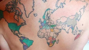 Buenos Aires, 6 de septiembre.- El sueño de Bill Passman siempre fue viajar. Lo que toda la vida quiso hacer este hombre de 59 años fue recorrer el mundo. Y fue tan fuerte ese sentimiento que quiso perpetuarlo en su propio cuerpo. Así, se tatuó un mapamundi en la espalda, donde cada vez que recorre un nuevo país, lo pinta de un color diferente.