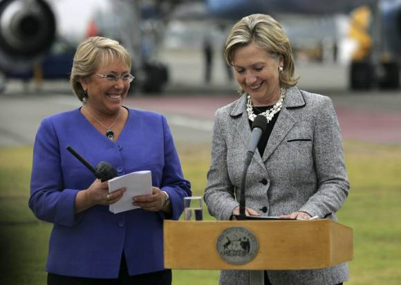 Bachelet recibió a Clinton en la terminal aérea y ambas iniciaron de inmediato un diálogo privado, a lo que siguió una conferencia de prensa en el mismo lugar, tal como ocurriera ayer con la visita del presidente de Brasil Luiz Inácio Lula Da Silva.