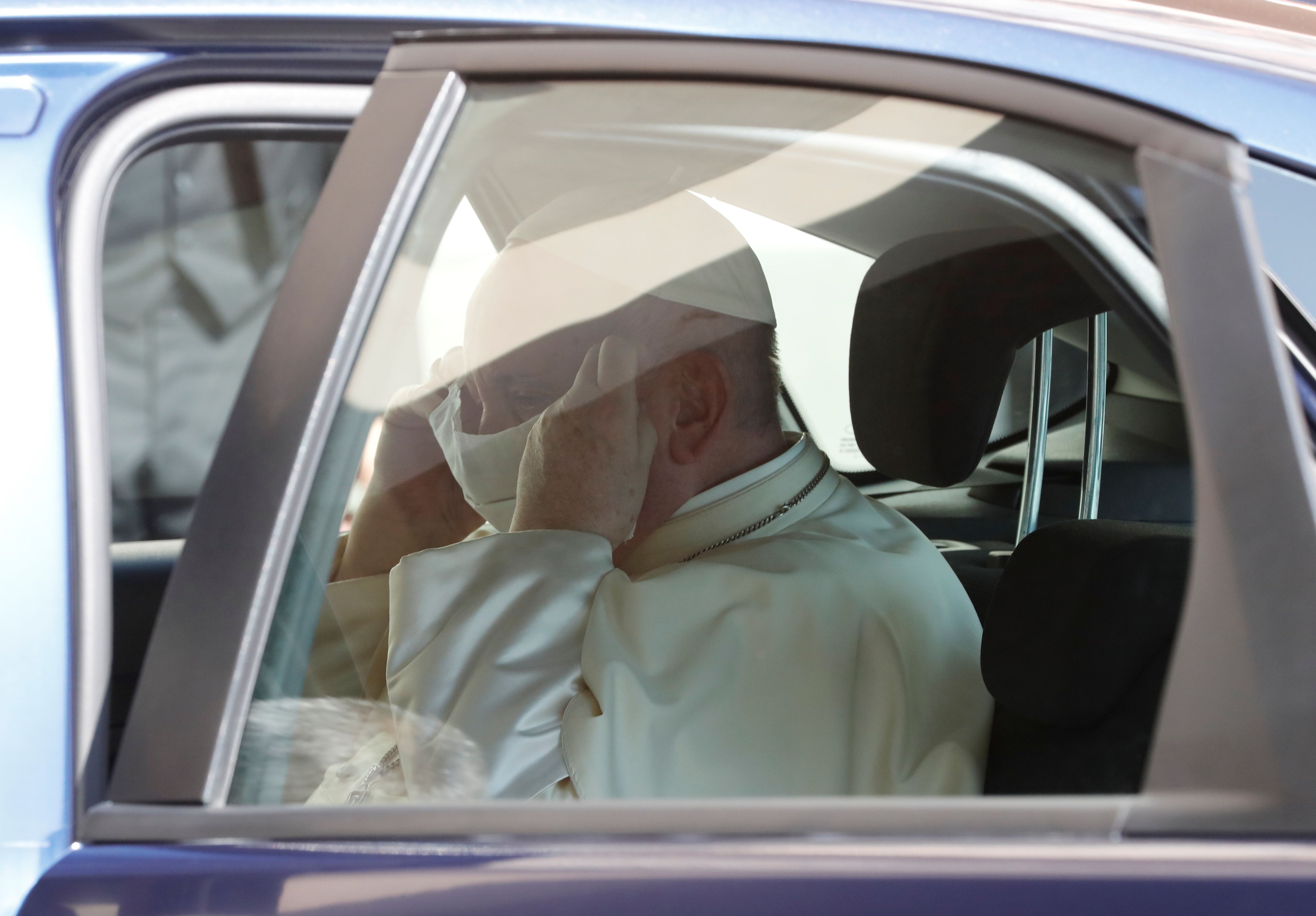 Este miércoles, el papa Francisco fue visto por primera vez en público con barbijo que, sin embargo, se quitó rápidamente antes de salir del coche que lo transportaba a la audiencia general.