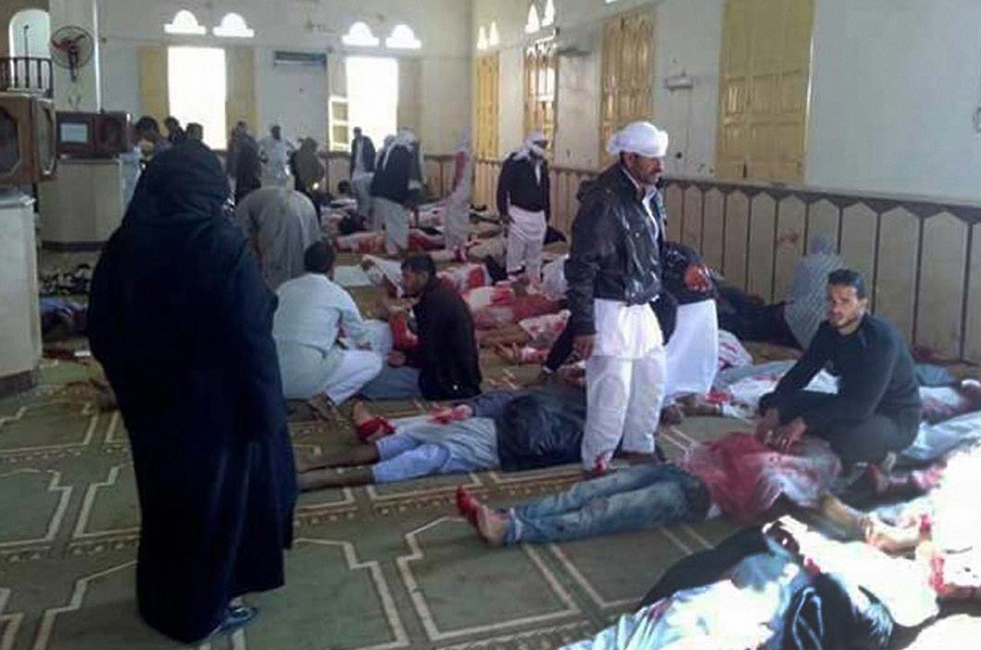Según imágenes, se muestra una hilera de cuerpos alineados y ensangrentados en el interior de la mezquita. Según la página de Facebook de la Unión de las Tribus del Sinaí, entre los fallecidos hay al menos 25 niños. Agencias