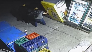 Un delincuente se quiso robar una cerveza y se le cayó la heladera encima. La cámara de seguridad capturó el momento en el que lo aplastó. Video.