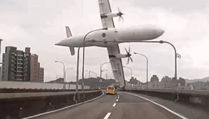 Unas imágenes espectaculares de videoaficionado mostraron el ATR 72-600 turbopropulsado que perdían altura e inclinado, que choca con la autopista con el ala y se hunde en el río.