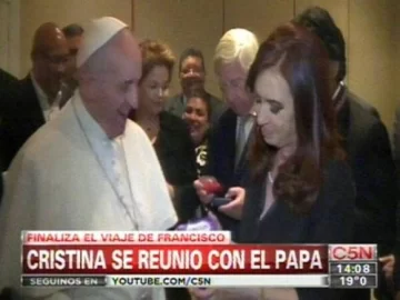 quien saludó al término de la misa que clausuró la Jornada Mundial de la Juventud 2013. "Y me bendijo unos rosarios", añadió Cristina a la prensa, luego de recibir el obsequio para su nieto Néstor Iván de manos de Francisco.