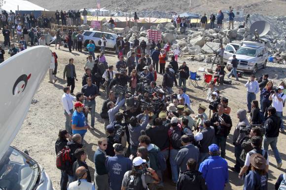 "(Presidente Sebastián) Piñera para el show", "70 días sin trabajo y sin dinero", "Refugio Esperanza, los desamparados", "San Esteban (el nombre de la Compañía dueña de la veta), no somos 33, somos 300", se podía leer en algunos de los carteles que portaban los mineros que tras el derrumbe en el yacimiento San José quedaron sin su fuente laboral.