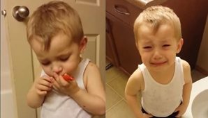Canadá, 15 de abril.-Kowen, de tan sólo 2 años, entra a su baño con su mascota "Top". Su madre lo sigue de atrás y graba la improvisada