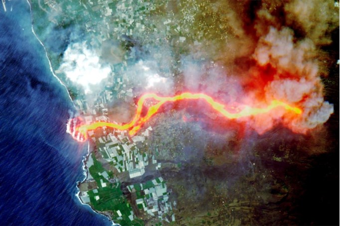 La lava comenzó a fluir este viernes desde una nueva grieta en el volcán Cumbre Vieja, en la isla española de La Palma, abriendo un camino diferente al de flujos anteriores, y una lluvia de ceniza fina obligó a los isleños a ponerse mascarillas y gafas.