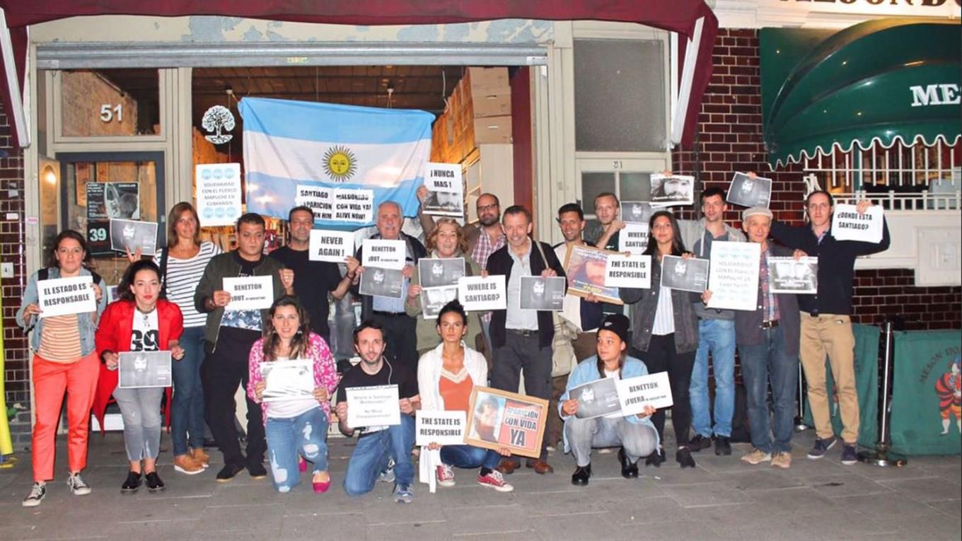 Argentinos y británicos que residen en Londres se sumaron hoy a la jornada de protesta en reclamo por la aparición con vida de Santiago Maldonado , quien fue visto por última vez el 1 de agosto, en el marco de un operativo de Gendarmería en tierras de la comunidad mapuche Lof en Resistencia Cushamen, en Chubut.