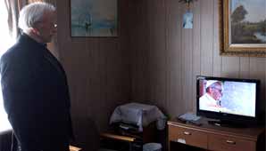 El monseñor de Puerto Stanley no pudo contener la sorpresa al recibir la atención de los fotógrafos y cámaras de televisión que le esperaban fuera de la capilla de la iglesia de Santa María en Puerto Stanley, capital de las Malvinas.