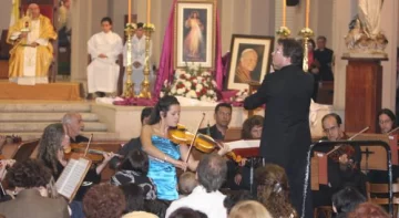 ’Viva la familia, viva Juan Pablo II, viva la Iglesia’, cerró su sermón el sacerdote Rómulo Cámpora y la Catedral, con más de 400 personas, respondió con un sorprendente aplauso, en lugar del tradicional silencio de reflexión. La misa vespertina en el principal templo sanjuanino no fue como otras, fue especial y ese detalle de los aplausos fue uno más de los que se dieron a lo largo de casi dos horas de la ceremonia que se hizo en homenaje a los nuevos santos, pero especialmente a Juan Pablo II, cuya reliquia estuvo expuesta durante todo el domingo. Lo más llamativo fue la presencia del Coro Vocacional y la Orquesta Sinfónica de la UNSJ, cuya actuación generó un clima que por momentos fue solemne y en otros de profunda emoción.