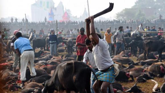 El ritual que se celebra año tras año en el templo Gandhimai, cerca de la frontera con la India, ha contado en esta oportunidad con la asistencia de decenas de miles de personas. El grupo Humane Society International estimó que el número de animales sacrificados rondará al culminar los ritos en unos 500.000.
