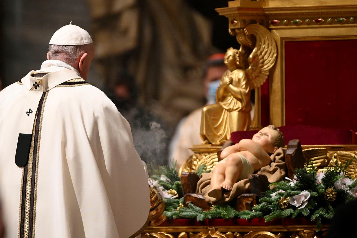 En una misa de Gallo marcada a fuego por la pandemia de coronavirus -que obligó a Italia a volver a ser una "zona roja" a nivel nacional, es decir, a un confinamiento total y a unas Fiestas totalmente acotadas-, el Papa llamó hoy a todos los cristianos a no caer en el desánimo, a confiar en Dios y a no temer "no salir del túnel de la prueba".