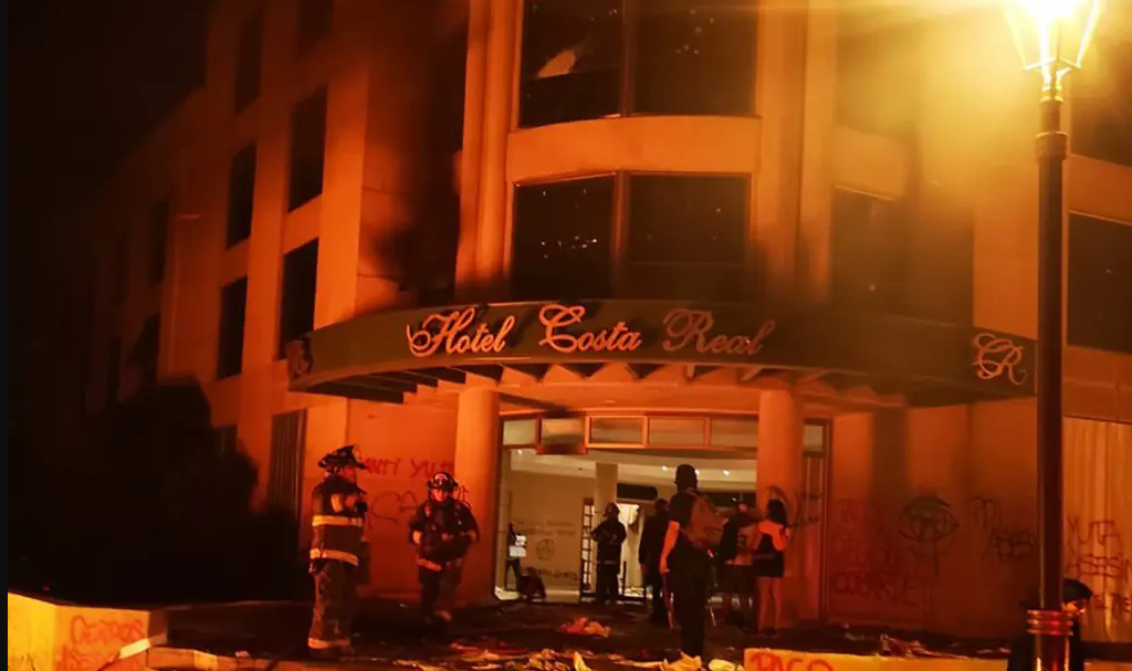 De acuerdo con lo publicado por el diario Biobio, el establecimiento que se vio afectado por la violencia fue Hotel Costa Real de la Serena, que tras ser saqueado durante la tarde fue incendiado. El fuego comenzó por la noche, cuando al menos 50 encapuchados ingresaron, destrozaron el lugar, asaltaron al personal del recinto, se llevaron sus pertenencias y para terminar prendieron fuego el segundo piso.