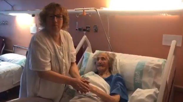 Tras su internación y luego de recuperarse de diferentes complicaciones respiratorias, Encarna abandonó ayer el hospital acompañada de su hija Mari Carmen entre los aplausos del personal sanitario que la ha atendió todos estos días.