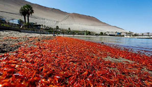 Chile.- Miles de langostinos pequeños quedaron atrapados en la playa La Lisera de la ciudad de Arica, en el Norte de Chile, sumándose a la serie de varazones de especies marinas ocurridos recientemente en los mares de ese país.