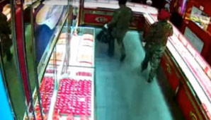 Una cámara de seguridad de una joyería de China captó un momento en el que dos ladrones entraron armados a una tienda y salieron corriendo sin llevarse nada. Video.