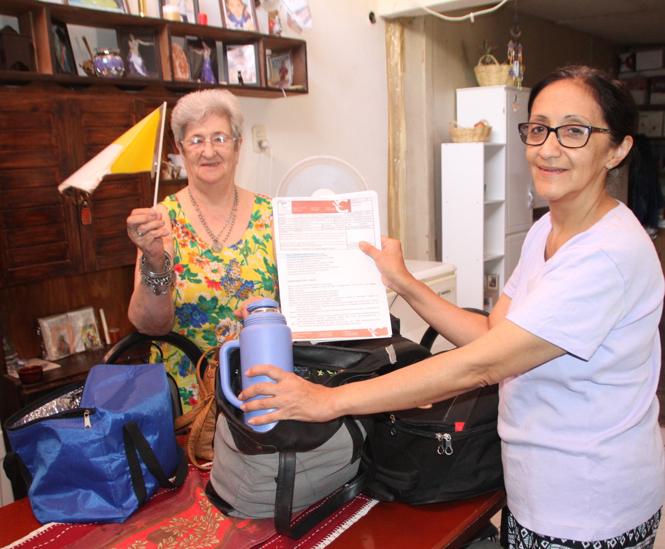 Patricia Talquenca, su mamá y sus dos hijas fueron de las primeras en comprar el viaje en una de las empresas sanjuaninas. “Vimos la publicidad en Facebook y no dudamos. Estamos pasando por una situación fea de enfermedad y nos parece una buen idea ir a ver al Papa para reforzar nuestra fe”, dijo la mujer que no conoce Chile, al igual que sus acompañantes, y por lo que esperan que viaje sea una doble aventura.