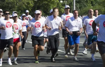 Enrique llegó escoltado por una caravana de diez vehículos y después de terminar la carrera, sudando y bebiendo agua, intercambió palabras con los participantes.