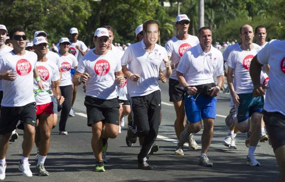 Un grupo de manifestantes brasileños le recordó a Henrique de Gales que “Las Malvinas son argentinas” portando una pancarta con la inscripción ‘The Malvinas are argentinians’. Fue durante una carrera atlética en la que participó el príncipe en Río de Janeiro en su segundo día de la gira por suelo brasileño que termina hoy.