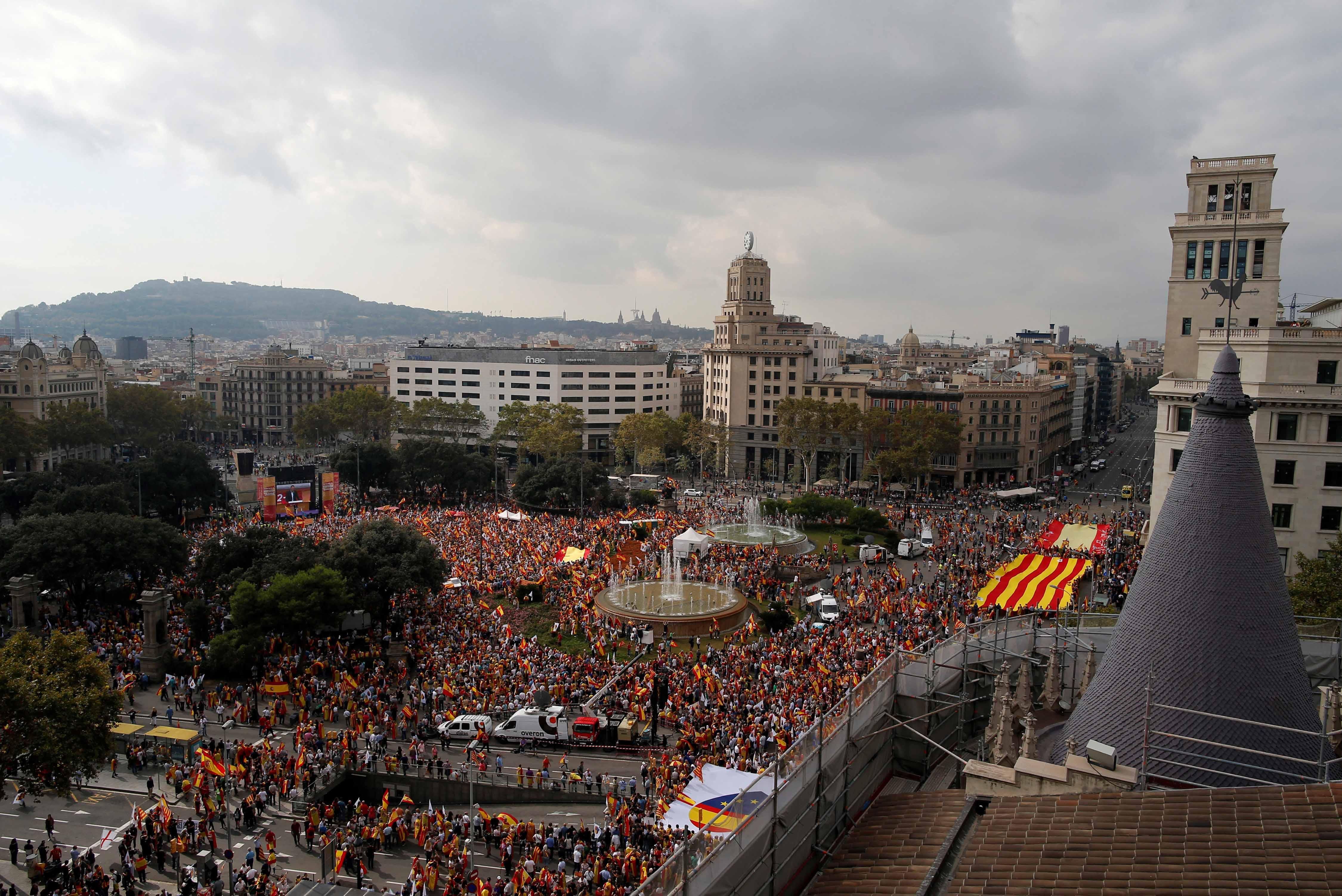 Varias municipalidades catalanas anunciaron que ignorarán el feriado y trabajarán como un día normal. Pero los españolistas decidieron marchar en Barcelona pidiendo unidad, y al grito de "prisión para Puigdemont".