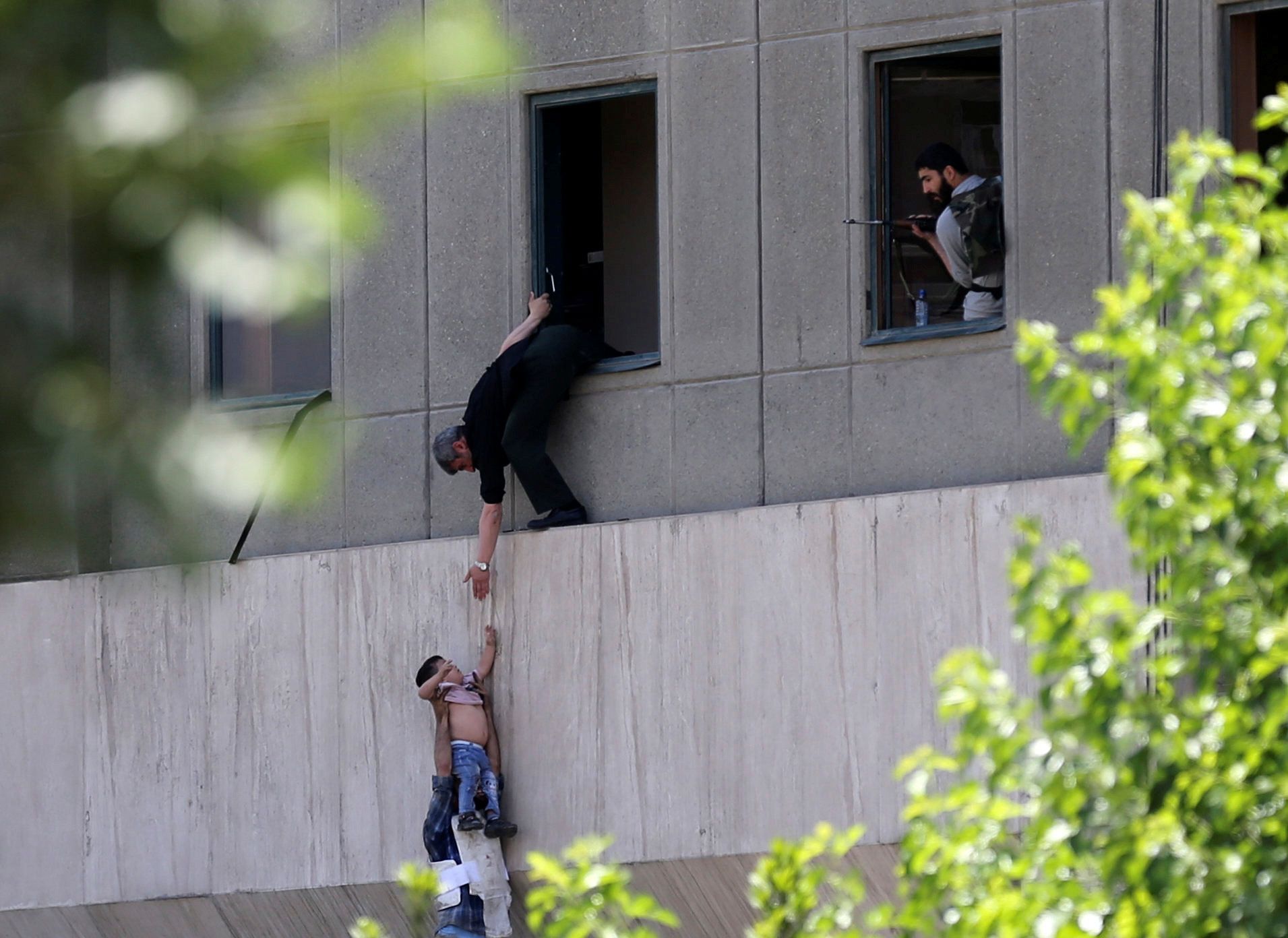 Tensión. Un chico es evacuado durante el ataque al parlamento iraní. Los accesos a este edificio fueron cerrados por la policía en un ambiente de gran tensión y nerviosismo.