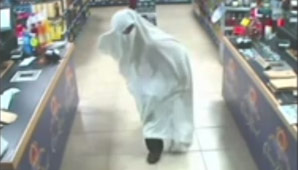 Estados Unidos, 25 de octubre.- Las cámaras de un local ubicado en Alabama, Estados Unidos, revela a un hombre disfrazado con una manta sobre el cuerpo que se cuanta botella puede.