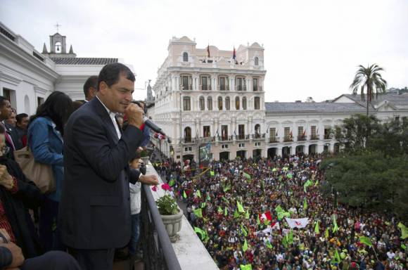 “A esta revolución no la para nadie, estamos haciendo historia, estamos construyendo la patria chica y la patria grande; gracias por esta confianza, nunca les fallaremos, esta victoria es de ustedes”, expresó Correa al saludar a la multitud desde los balcones de la sede gubernamental.