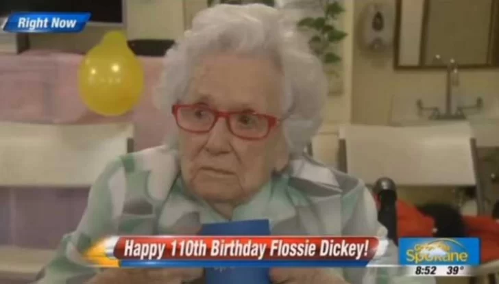 La reportera Nichole Mischke, de la cadena FOX, acudió a la residencia de ancianos de Cheney (Washington, Estados Unidos) donde vive Flossie Dickey, a la que en los últimos días han hecho innumerables entrevistas sobre su longevidad.