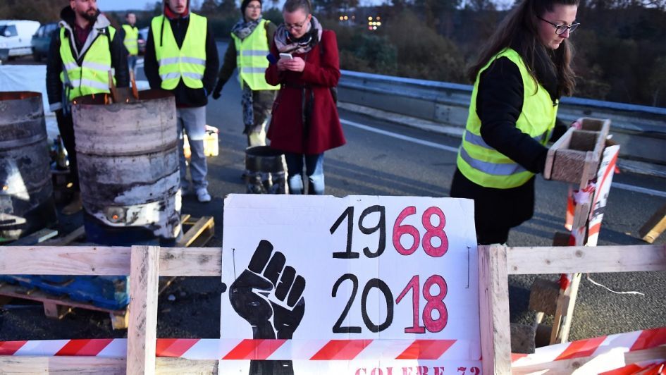 El sábado, unas 290.000 personas se manifestaron contra el alza de los precios del combustible y la caída del poder adquisitivo, bloqueando carreteras, rotondas, supermercadoa y levantando las barreras de los peajes en toda Francia. El domingo, según estimaciones de la Policía, salieron a manifestarse unas 46.000 personas en todo el país. Una persona murió atropellada y más de 400 resultaron heridas durante las protestas este fin de semana.