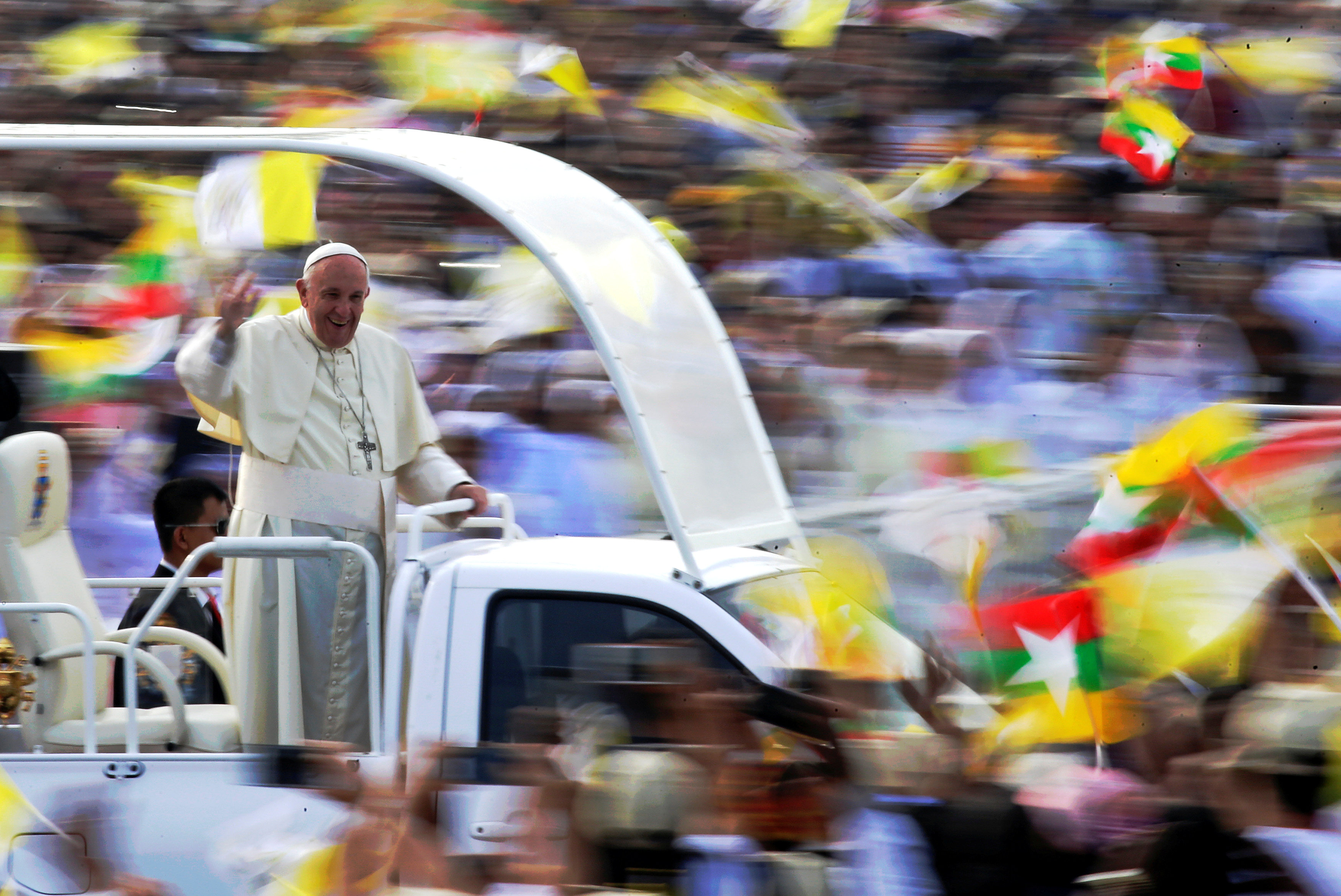 El papa celebró este miércoles una misa al aire libre, delante de unas 150.000 personas, que acudieron desde todos los rincones de Birmania, emocionados por la primera visita de un pontífice, un viaje marcado por la sombra del éxodo de los rohinyás.