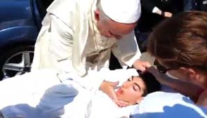 Buenos Aires, 22 de junio.- Durante su visita por Calabria, el papa Francisco se detuvo en la ruta para saludar y bendecir a un joven discapacitado que se encontraba en una camilla a la espera de su paso. Los presentes se emocionaron hasta las lágrimas ante el gesto del Sumo Pontífice.