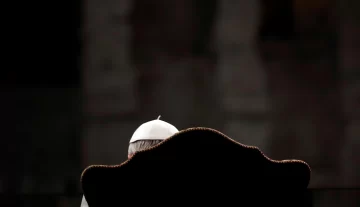 El Papa no participó de la ceremonia caminando, sino que siguió la procesión desde un podio.