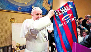 Italia, 21 de marzo.- El papa Francisco recibió en el Vaticano la camiseta especial de San Lorenzo que el club le envió apenas se supo que fue nombrado Sumo Pontífice.