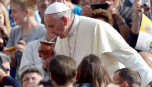 Francisco, a quien la presidente Cristina Kirchner le había regalado un equipo de mate un día antes de su asunción formal como Papa el pasado marzo, no dudó en beber la infusión argentina típica, para seguro desesperación de su servicio de seguridad.