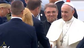 ‘No tenemos miedo de decir esto: el mundo está en guerra porque ha perdido la paz’, declaró el Sumo Pontífice que viajó desde Roma, en un vuelo de la compañía Alitalia, acompañado de la delegación vaticana y de 75 periodistas acreditados.