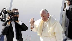 En el aeropuerto de Entebbe, situado a unos 40 kilómetros de Kampala, el sonido de los tambores y los bailes de la tribu kiganda dieron la bienvenida al pontífice.