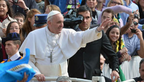 El argentino llegó a la Plaza San Pedro en el mismo "Papamóvil" que utilizó el día de su asunción formal. Fiel a su costumbre, bajó del vehículo y saludó a las personas que esperaban el inicio de su homilía. "Viva el Papa", "esta es la juventud del Papa", "te queremos" fueron coreados por los presentes, entre ellos varios miles de jóvenes españoles y latinoamericanos.
