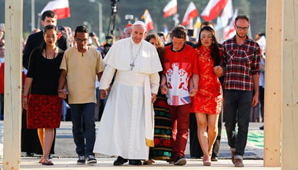 La ceremonia más simbólica de las JMJ, esperando la misa de clausura de mañana comenzó con el papa que caminó de la mano con seis chicos, representantes de los cinco Continentes, y cruzó junto con ellos una simbólica Puerta Santa, en ocasión del Jubileo de la Misericordia .