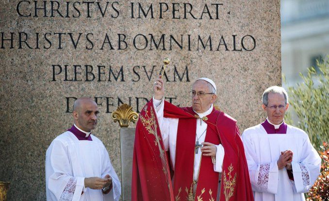 "Esta celebración tiene como un doble sabor, dulce y amargo, es alegre y dolorosa, porque en ella celebramos la entrada del Señor en Jerusalén, aclamado por sus discípulos como rey, al mismo tiempo que se proclama solemnemente el relato del evangelio sobre su pasión", había iniciado dos horas antes la Misa por el Domingo de Ramos, primera de las celebraciones por la Semana Santa, en la plaza emblema del Vaticano.