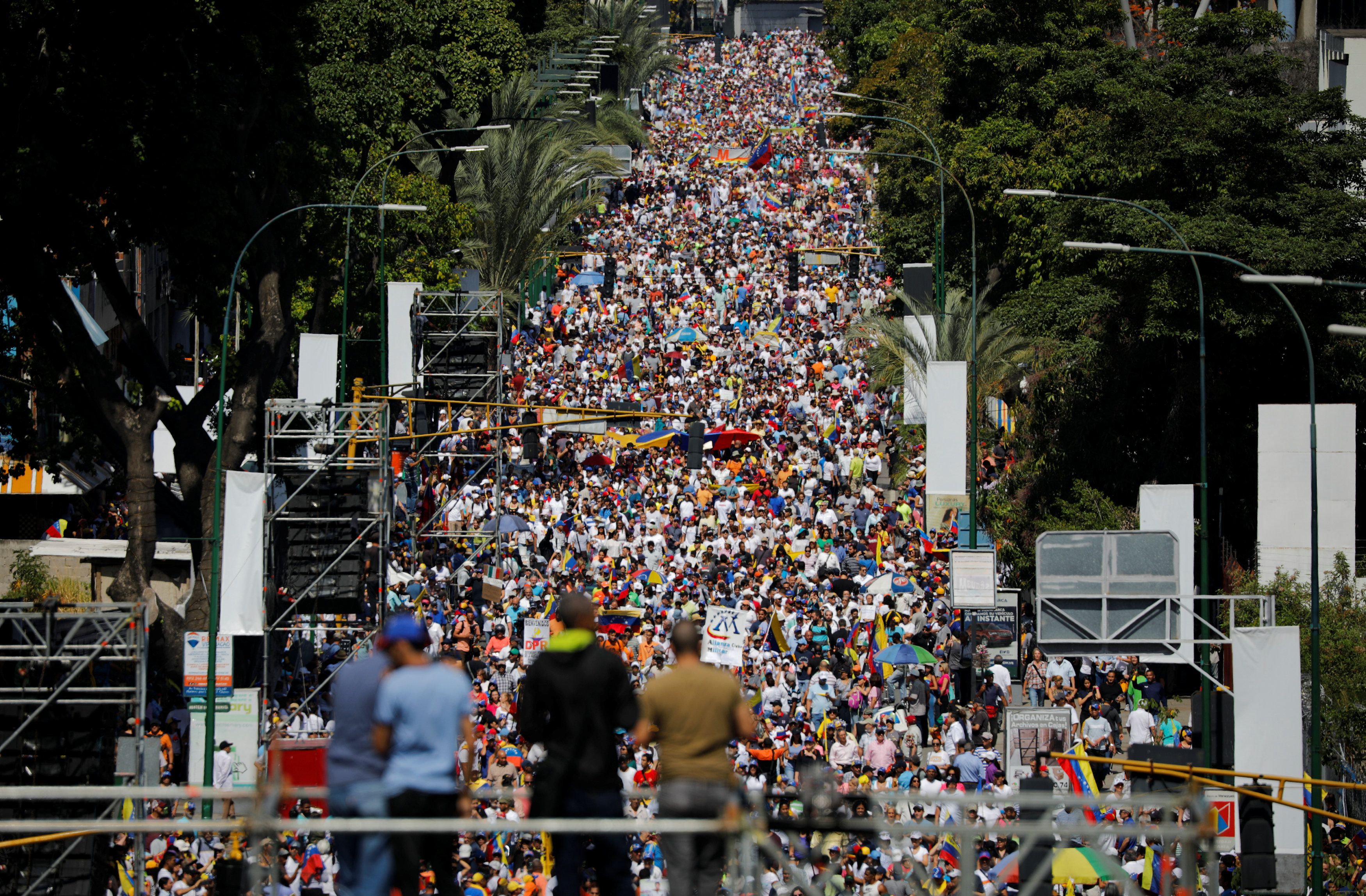 El presidente de la AN (parlamento) dio su discurso en la plaza Alfredo Sadel (Caracas), donde confluyeron las marchas de decenas de miles de personas.