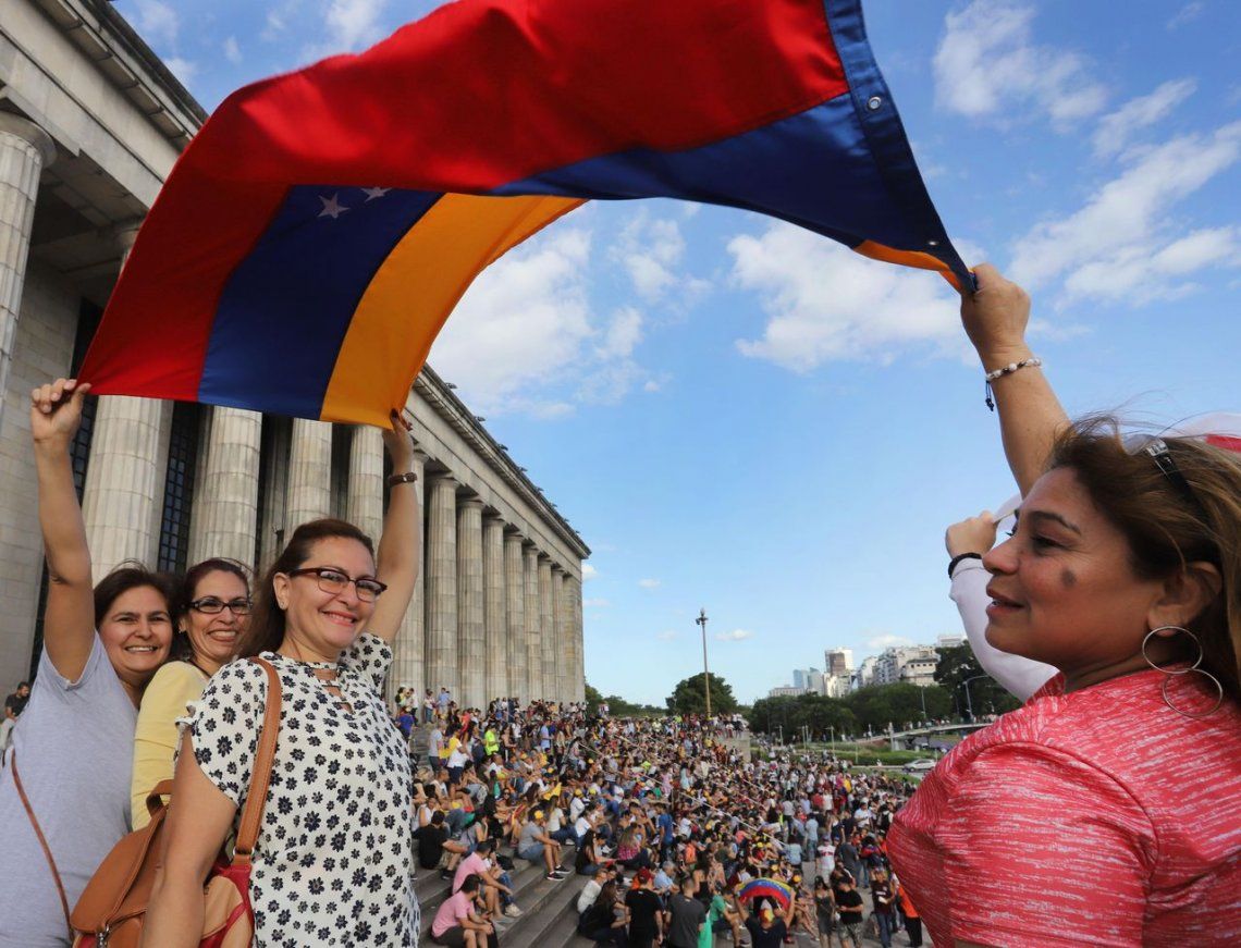 En el marco de la "manifestación mundial" convocada por Guaidó, venezolanos se congregaban ayer frente a la Facultad de Derecho de la Universidad de Buenos Aires (UBA) para pedir la salida del mandatario Nicolás Maduro y reclamar "elecciones libres".