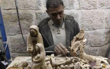 Las ciudades bíblicas de Belén y Nazaret completaron los preparativos de decoración de sus calles para recibir a miles de turistas y peregrinos con motivo de la Navidad, en una afluencia que, se espera, sea mayor aún que la del año pasado. En este marco los artesanos que tallan la madera son uno de los principales atractivos. En la foto uno trabaja en una figura religiosa cristiana, hecha de madera de olivo.
