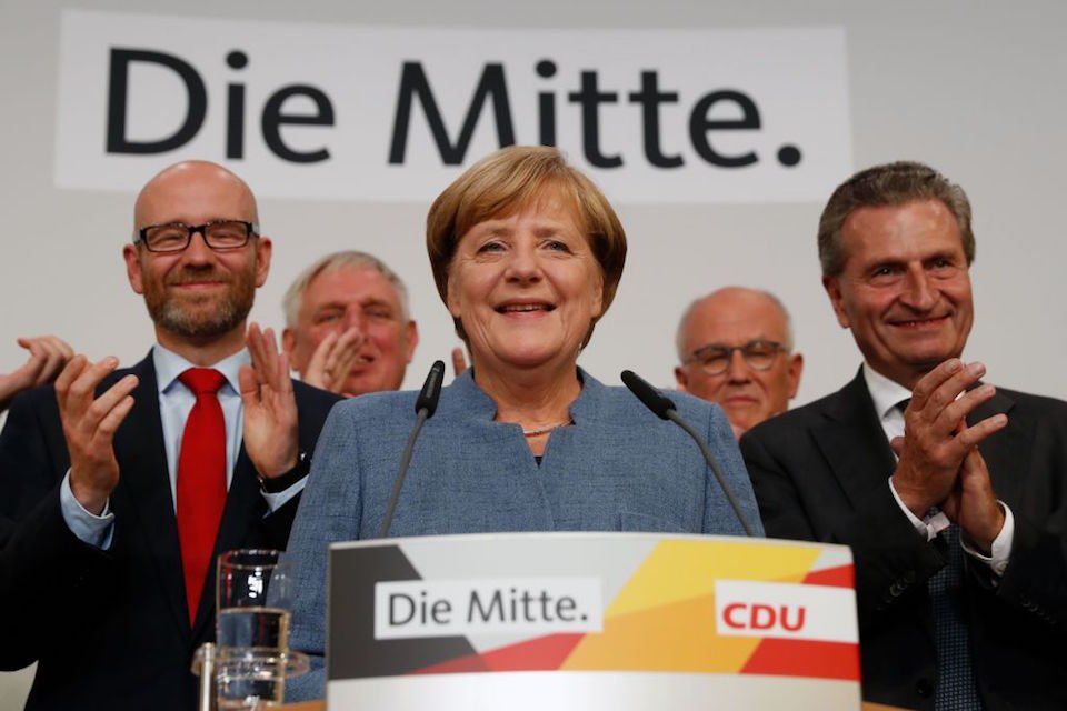 Merkel celebró su nueva victoria en la sede de la fuerza en Berlín, prometió "recuperar" el electorado perdido a manos de la ultraderecha.