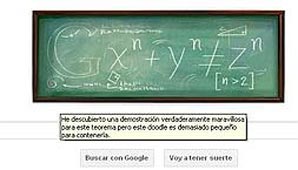 Google conmemora de esta manera el 410 aniversario del nacimiento del matemático, con un nuevo ‘doodle’ donde aparecen símbolos matemáticos. Al pasar el ratón por la imagen se puede leer un texto: "he descubierto una demostración verdaderamente maravillosa para este teorema pero este doodle es demasiado pequeña para contenerla".