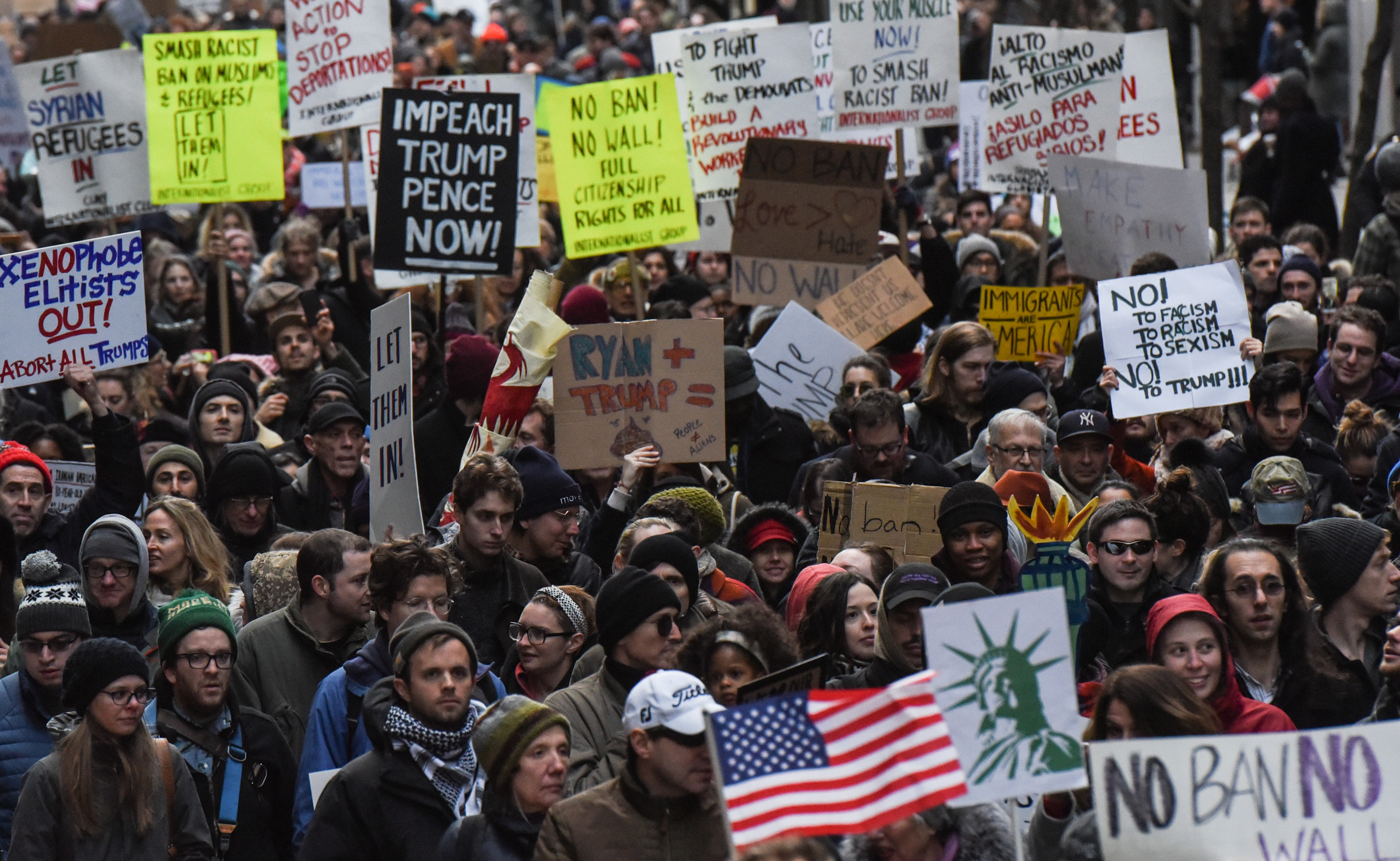 escenario de importantes protestas contra la polémica orden sobre inmigración del presidente Donald Trump, mientras el mandatario republicano redobló la apuesta y pidió ‘fronteras fuertes’.
