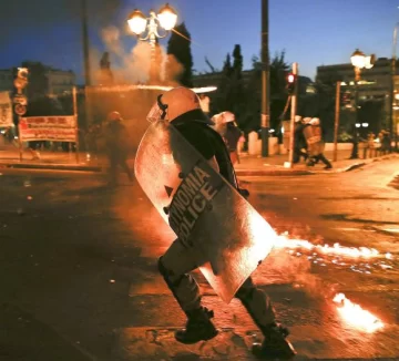 Afuera, un grupo de griegos que se manifestaba contra las medidas de austeridad lanzó decenas de bombas molotov a la Policía que respondió lanzando gas lacrimógeno, lo que generó los incidentes más violentos en mucho tiempo en la capital helena. Más temprano, los manifestantes marcharon con carteles que decían “No al rescate” y “No a las políticas de la UE, el BCE y el FMI”.