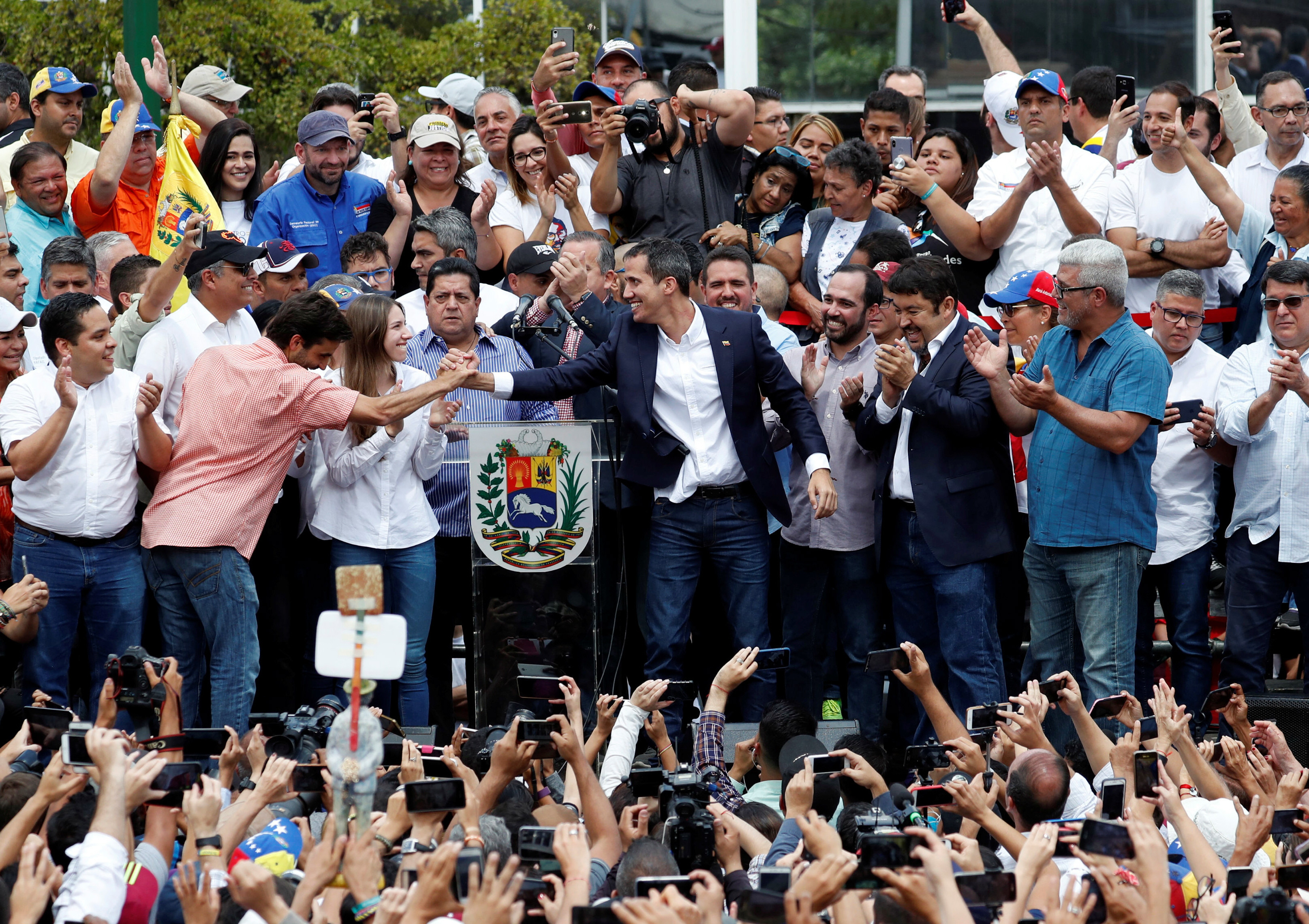 Multitud. Una multitud de venezolanos se reunieron en Caracas para recibir a Guaidó, una figura clave de la oposición que espera reemplazar al presidente Maduro.