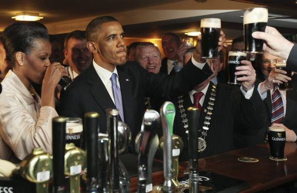 Tras estrechar manos durante cerca de 20 minutos, Obama y su esposa, Michelle, visitaron el pub ‘Ollie Hayes‘, uno de los dos que existen en la localidad donde Obama y Michell se bebieron la pinta de cerveza, la misma que la reina Isabel II de Inglaterra se negó a beber la semana pasada en su histórico viaje a Irlanda.